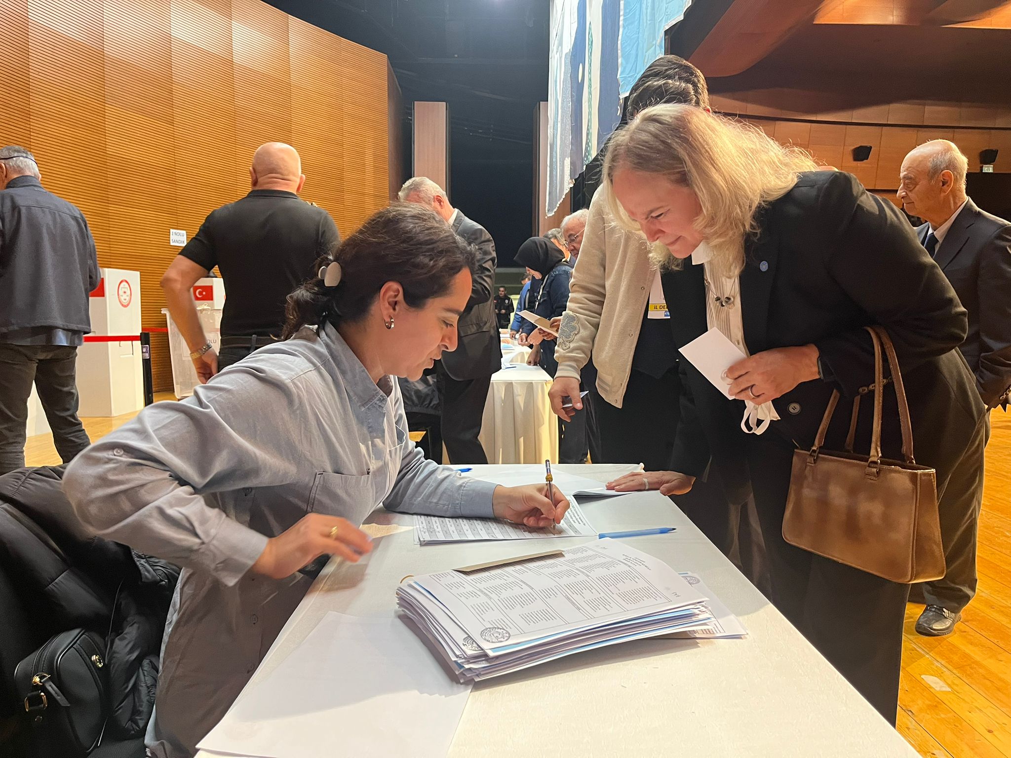 Seçimde iki aday olan beyaz listeden mevcut başlan İsmail Kaya ve mavi listeden Nevzat Kocakurt için delegeler oy kullanmaya 14:30 itibarıyla başladı.