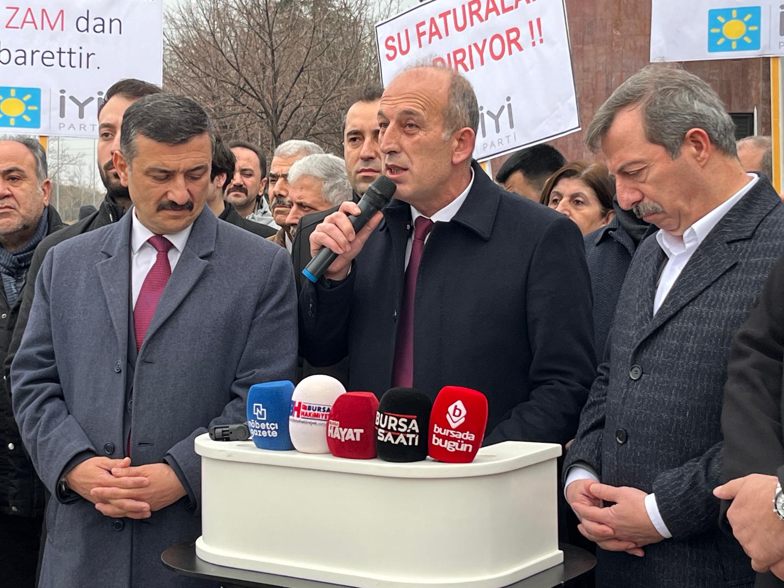 Türkoğlu, İYİ Parti Bursa İl Başkanlığı’nın çarşamba gününden itibaren su zamlarının geri çekilmesi talebiyle Bursa genelinde imza kampanyası başlatacağını da duyurdu.