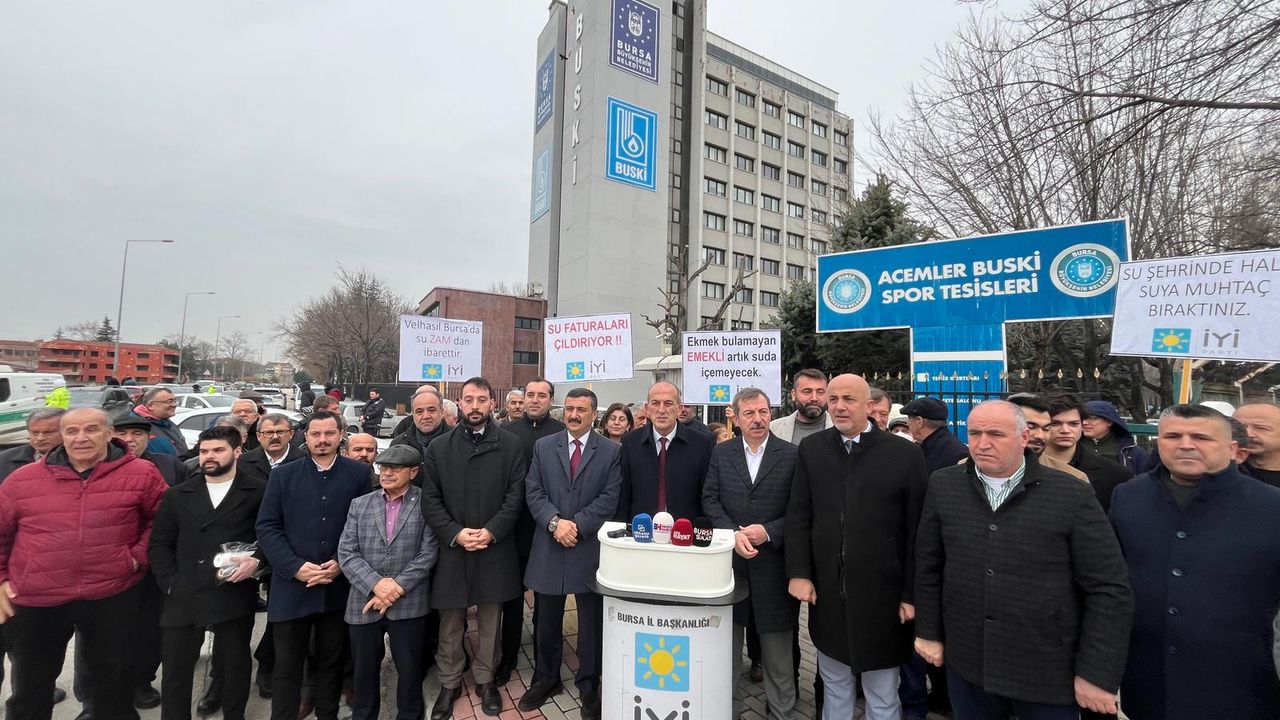 İYİ Parti Bursa İl Başkanlığı, BUSKİ Genel Müdürlüğü önünde, Bursa Büyükşehir Belediyesi tarafından uygulamaya konulan su zamlarına yönelik sert bir basın açıklaması yaptı. Açıklamada, artan hayat pahalılığı, yüksek kiralar ve faturalar altında ezilen Bursalıların temel bir ihtiyaç olan suya yapılan zamlarla daha da zor duruma düşürüldüğü ifade edildi.
