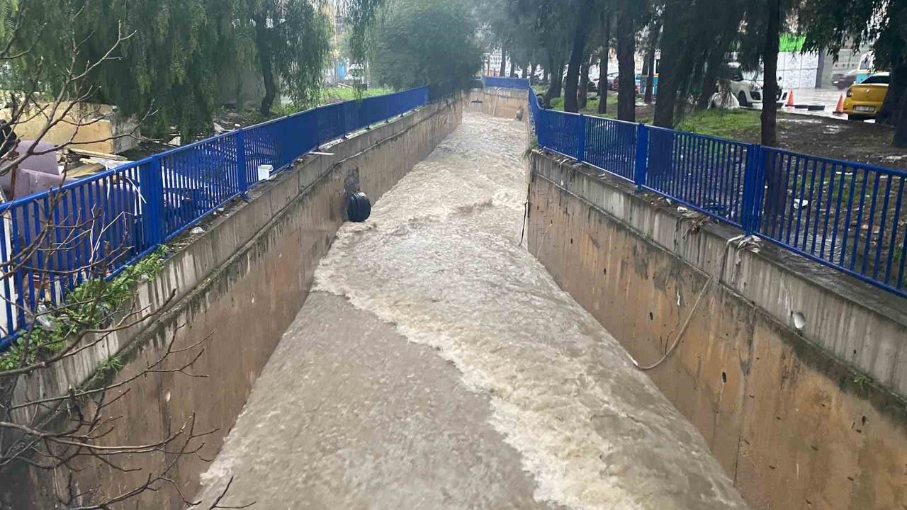 Meteoroloji İzmir Bölge Müdürlüğünün bugün için yaptığı uyarıda bulunduğu sağanak yağış, sabahın erken saatlerinden itibaren etkili olmaya başladı. Özellikle Karabağlar ve Buca'da bazı cadde ve sokaklar adeta göle döndü. Karabağlar Sanayi bölgesinde dere taşması sonrası yol su altında kaldı. Bir vatandaşın suya kapılmamak için demir korkuluklara tutunarak yürümeye çalışması dikkat çekti.