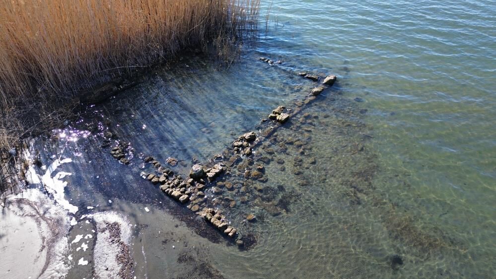 Göl sularının çekilmesiyle tamamen görünür hâle gelen kalıntıların, İznik sahil bandında kumsalın hemen yanında yer aldığı görülürken, yapıyı fark eden ekip heyecan yaşadı.