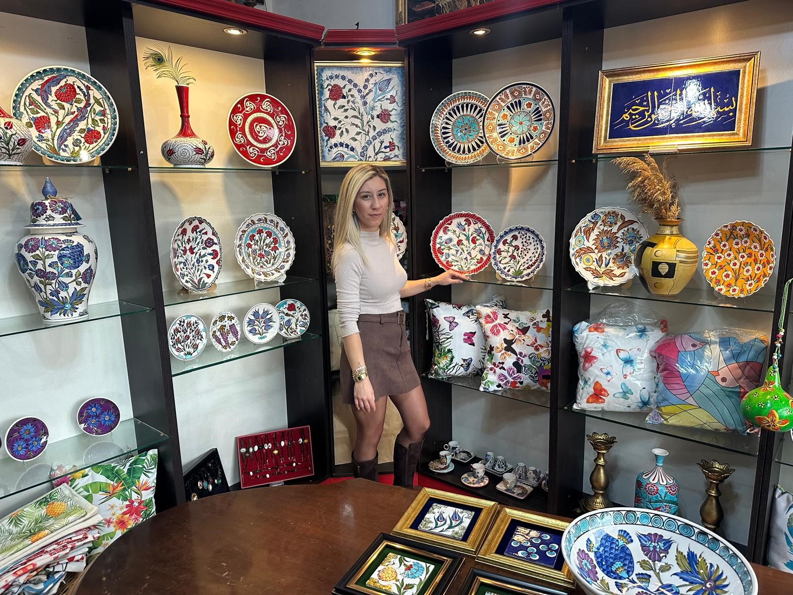 Çini sanatçısı Kübra Göllü ise 10 yıldır çini işiyle uğraştığını belirterek, hem lise de hem de üniversitede seramik cam ve çinicilik üzerine eğitim aldığını söyledi.