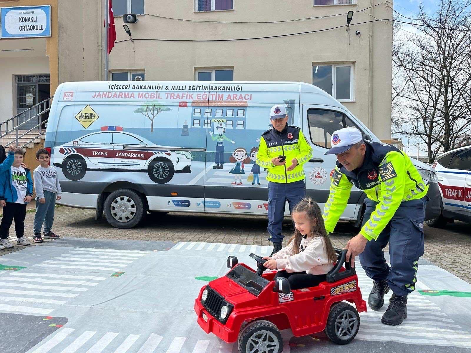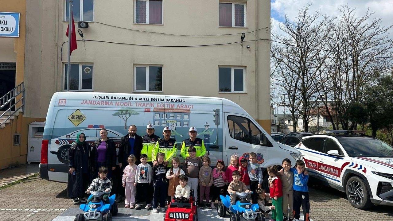 Okul bahçesinde düzenlenen uygulamalı temel trafik eğitiminde, öğrencilere trafik kuralları, güvenli geçiş noktaları ve trafik işaretlerinin önemi görsel materyaller ve uygulamalı parkurlar eşliğinde anlatıldı. Geleceğin bilinçli sürücü ve yayalarını yetiştirmeyi hedefleyen bu etkinlikte, Trafik Jandarmaları öğrencilerin merak ettiği soruları yanıtlarken trafik güvenliği konusunda farkındalık oluşturdu.