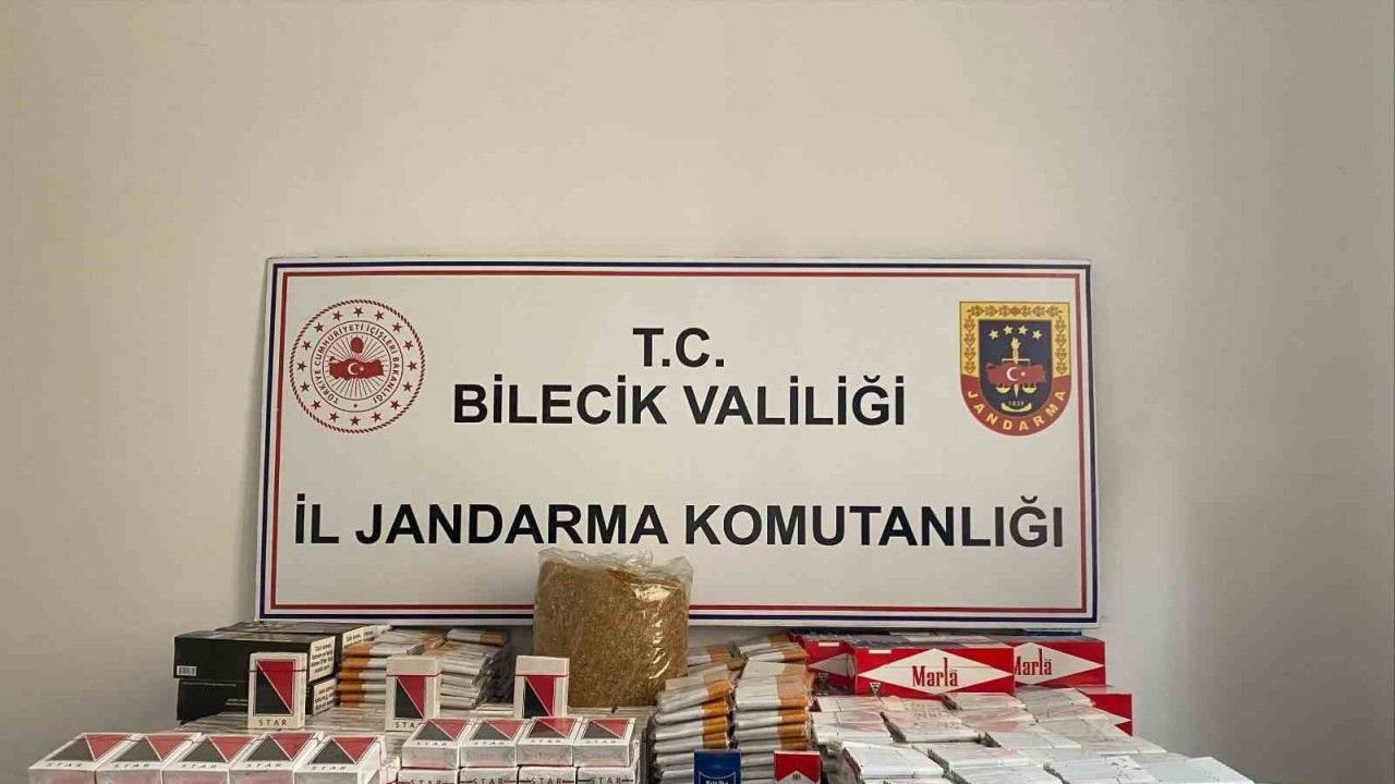 Edinilen bilgilere göre, Bilecik İl Jandarma Komutanlığı ekiplerince Osmaneli ilçesinde bir şüpheliye ait 3 ayrı adreste yapılan aramalarda; 1 adet ruhsatsız tabanca, 1 adet şarjör, 6 adet 7.65 mm tabanca fişeği, 21 bin 560 adet dolu makaron, 8 bin 600 adet boş makaron, 5 kilogram kıyılmış tütün ve 230 adet 20’lik boş sigara paketi bulundu.