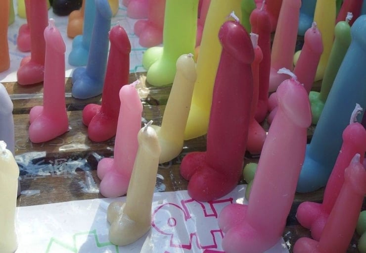 Festivalde çok sayıda penis şeklinde mum, şekerleme ve oyuncak da görücüye çıktı.