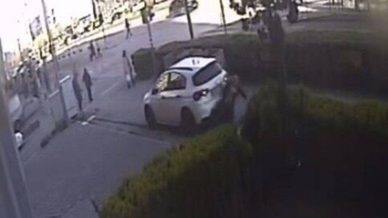 Eskişehir'de kaldırımda geri geri hareket eden otomobilin yayaya çarpıp üzerinden geçtiği anlara dair güvenlik kamerası kayıtları ortaya çıktı.