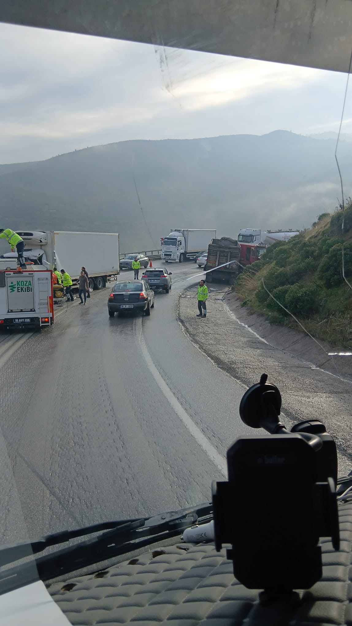 Edinilen bilgiye göre kaza İznik - Yenişehir yolu üzerinde meydana geldi. Derbent mahallesindesabah saat 10.00'da M.M. (59) idaresindeki 34 LU 482 plakalı kamyon ile S.S.(54) idaresindeki 34 HV 0408 plakalı kamyon ters istikametlere seyir halindeyken kafa kafaya çarpıştı. Kazada 34 HV 0408 plakalı kamyonun kabini içerisinde sıkışan S.S. itfaiye ekiplerinin müdahalesi sonrası çıkarılıp hafif yaralı halde hastaneye kaldırıldı. Kazayla ilgili tahkikat başlatıldı.