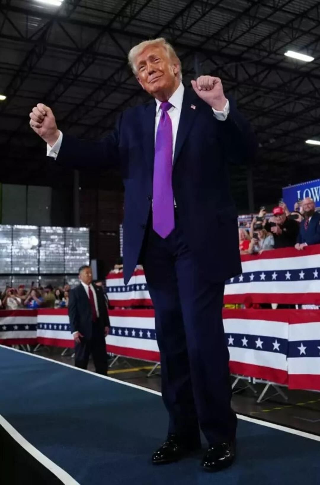 ABD Başkanı, önce mitingde sahnede Village People’ın “YMCA” şarkısı eşliğinde dans etti. Ardından ise boks dünyasına hızlı bir giriş yapan internet fenomeni Jake Paul ile bir araya gelip, aynı şarkıyla bir kez daha klasikleşen dans figürlerini sergiledi.