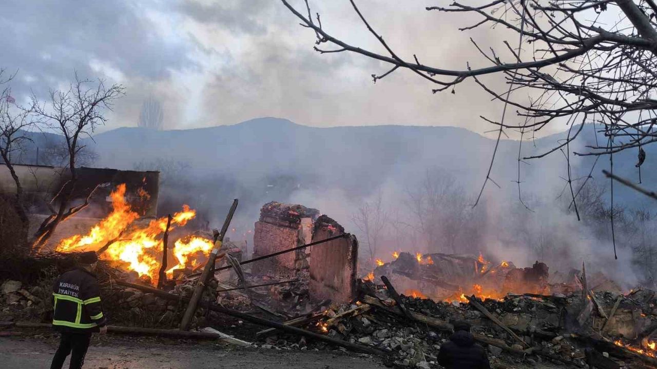 Karabük'ün Ovacık ilçesine bağlı Doğanlar köyünde sabaha karşı çıkan yangında 4 ev ile bir ahır alevlere teslim olarak kullanılamaz hale geldi.