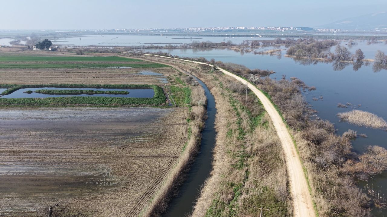 Yağışların ve Uludağ'daki karların erimesiyle Uluabat Gölü, son 10 yılın en yüksek seviyesine ulaşırken yaşanan taşkınlar Karacabey'de dönümlerce tarım arazisini su altında bıraktı.
