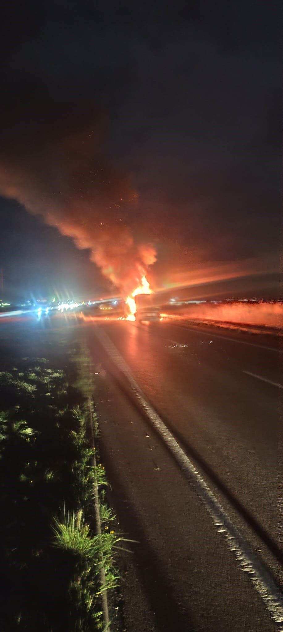 Olay, saat 00.30 sıralarında Karacabey-Bursa yolu Uluabat mevkii üzerinde meydana geldi. Henüz belirlenemeyen bir nedenle çıkan yangın kısa sürede büyüyerek tırı sardı. Alevler ve yükselen yoğun duman, yoldan geçen diğer sürücüler tarafından cep telefonu kameralarıyla görüntülendi.