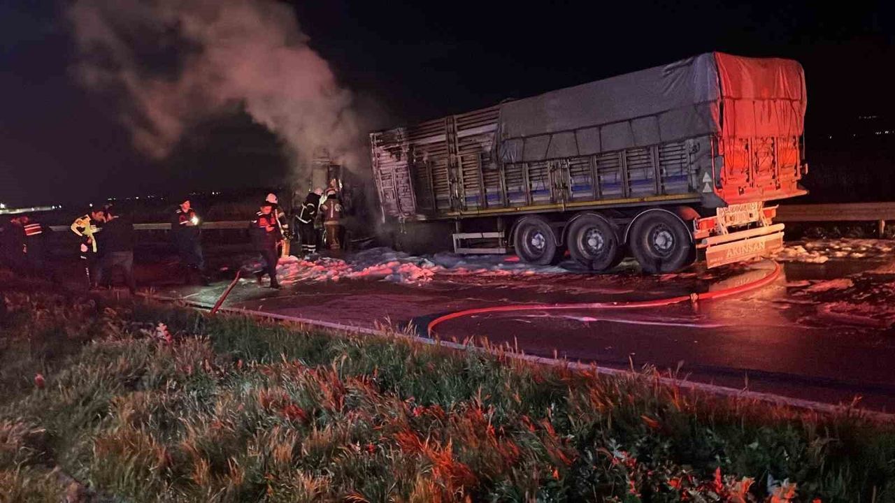 Bursa'nın Karacabey ilçesi Uluabat mevkiinde seyir halindeki bir tırda çıkan yangın paniğe neden oldu.