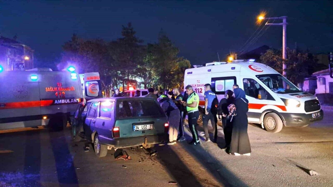 Karaman’da otomobil ile çarpışan motosikletteki anne ile oğlu yaralandı.