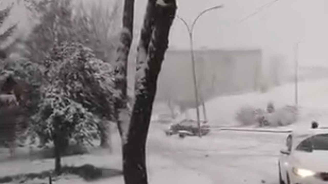 Bahçeşehir bölgesinde yaşanan olayda, yokuş aşağı seyir halindeki otomobil, karla kaplı zeminde kaymaya başladı. Sürücüsünün kontrolünü sağlama çabalarına rağmen duramayan araç, önce kaldırıma çarptı, ardından savrularak refüje çıktı. Kaza anı, o sırada kar yağışını görüntüleyen vatandaşın cep telefonu kamerasına anbean yansıdı.