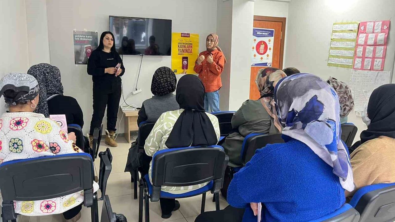 Kadınların bilinçlenmesini amaçlayan etkinlikte, şiddete karşı mücadelede erken ihbarın ve destek mekanizmalarının önemine dikkat çekildi.