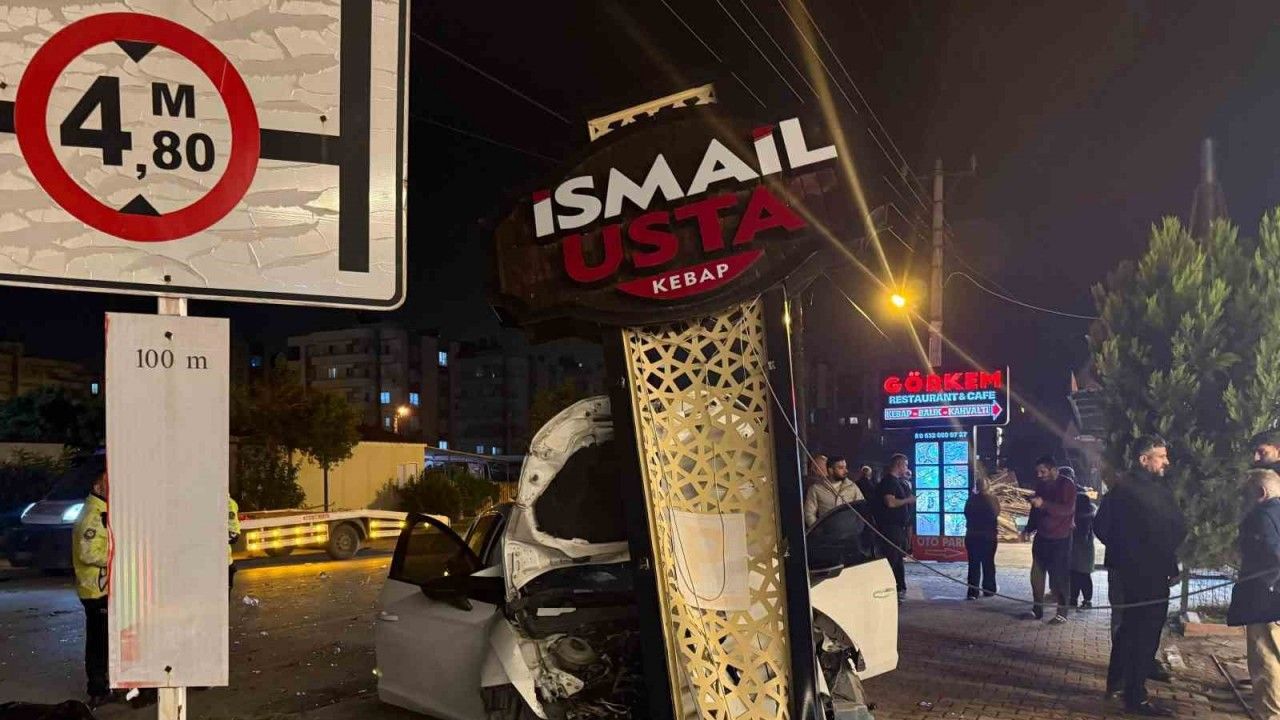 Hatay’da bir lokantanın tabelasına çarparak hurdaya dönen otomobilin sürücüsü kazanın ardından kayıplara karıştı.