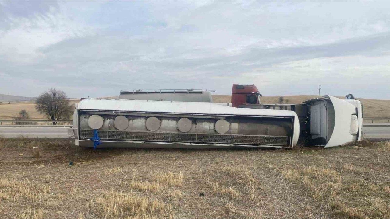 Kırıkkale’de, kontrolden çıkan akaryakıt tankerinin şarampole devrilmesi sonucu sürücü yaralandı.