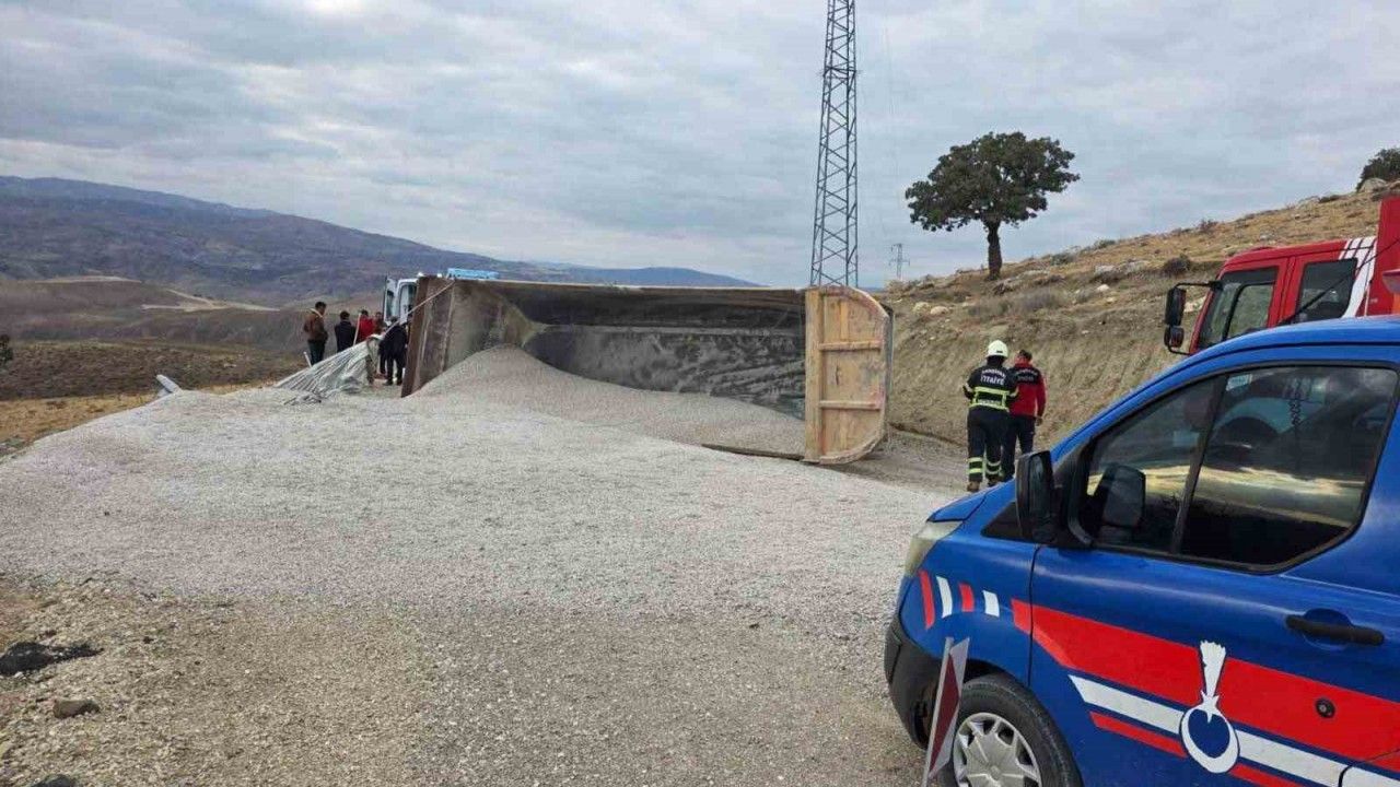 Kırıkkale’de kontrolden çıkan mıcır yüklü kamyonun devrildiği kazada sürücü yaralandı.