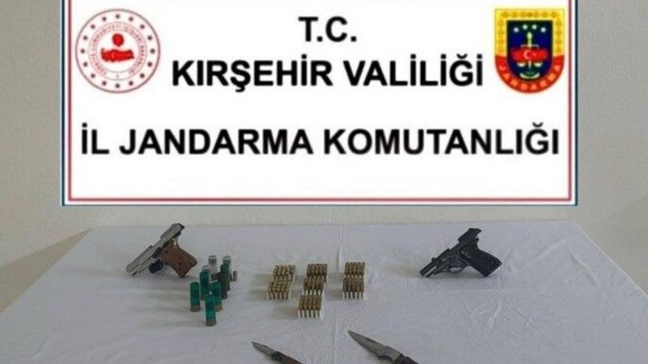 Kırşehir İl Jandarma Komutanlığı ekiplerince yürütülen çalışmalar kapsamında ruhsatsız silah taşıdığı tespit edilen şahsa yönelik operasyon düzenlendi. Akpınar İlçe Jandarma Komutanlığı ekiplerince yapılan çalışmalarda, A.U.'nun ruhsatsız silah bulundurduğu bilgisine ulaşıldı. Alınan arama kararıyla şüpheliye ait ev ve araçta arama yapıldı. Aramalarda; 1 adet ruhsatsız kuru sıkı tabanca, 1 adet ruhsatsız tabanca, 3 adet şarjör, 1 adet ses fişeği, 167 adet tabanca fişeği, 9 adet av tüfeği kartuşu, 2 adet bıçak ele geçirildi.