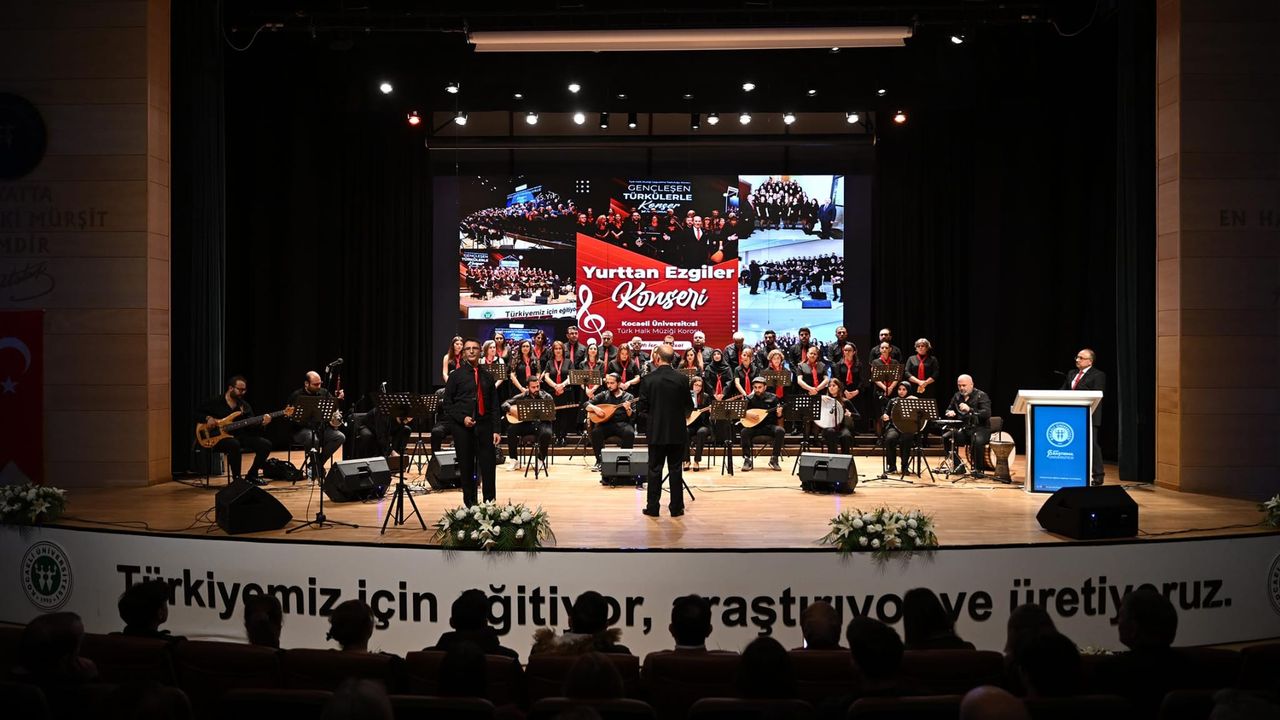Kültür ve sanat faaliyetleri kapsamında düzenlenen “Yurttan Ezgiler” konseri, ulusal Gençleşen Türküler Topluluğu Kocaeli temsilcisi şef İsmet Ünsal yönetimindeki Kocaeli Üniversitesi Thm topluluğu salonu dolduran coşkulu kalabalıkla buluştu.