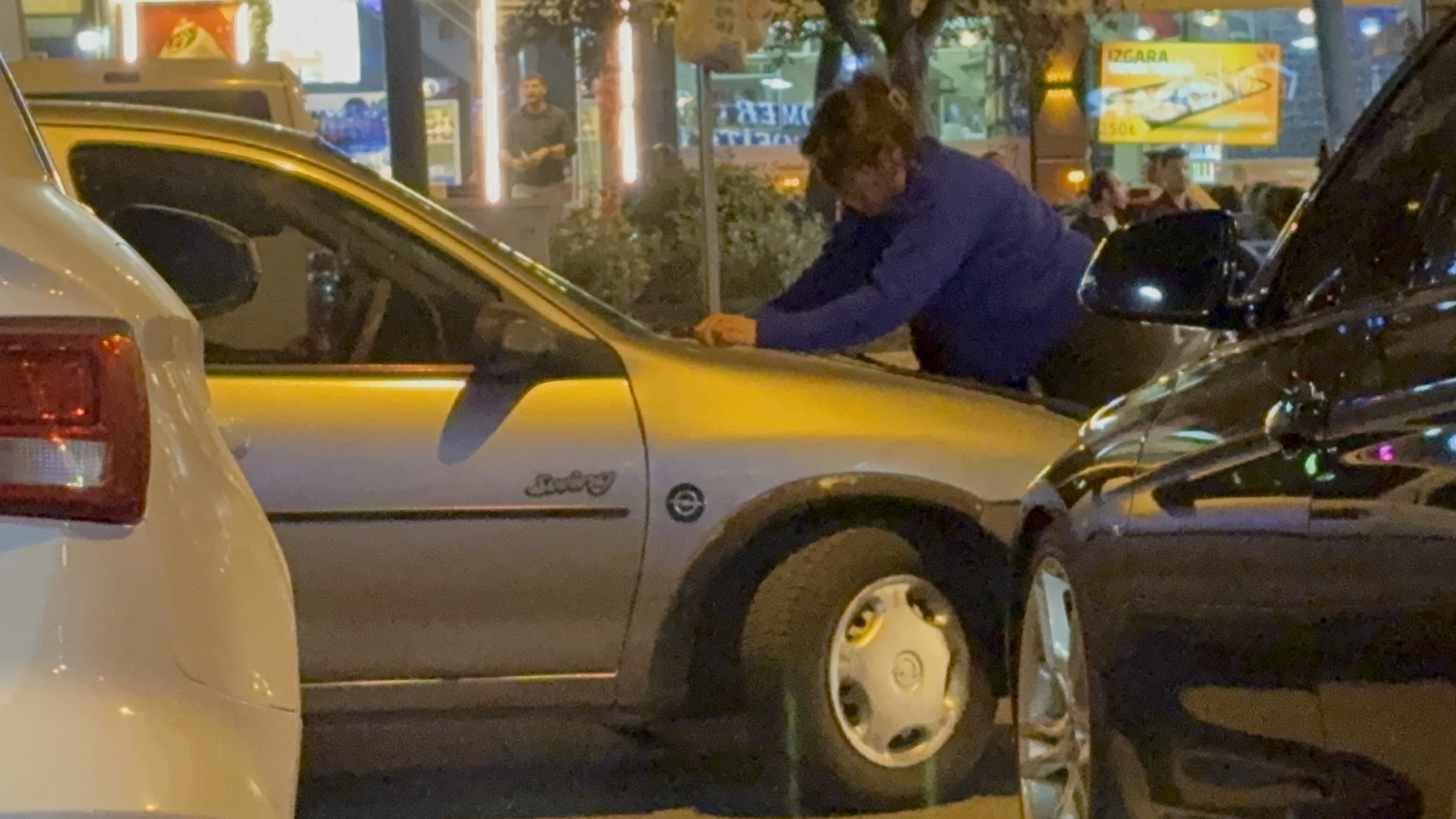 Daha sonra otomobilinden inen adam eşiyle bir süre daha tartıştıktan sonra çift otomobile binerek uzaklaştı.