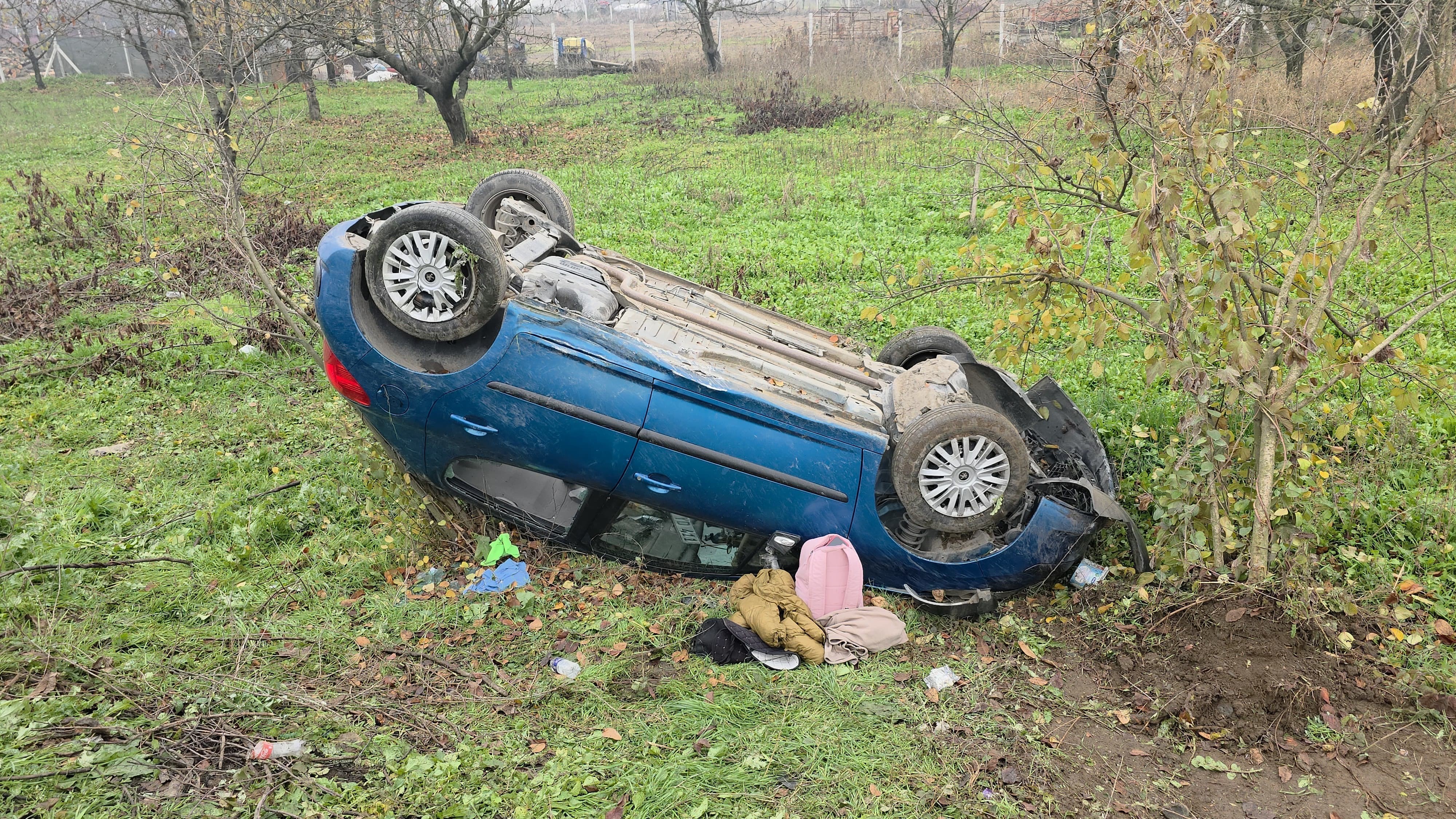 Bursa'nın İnegöl ilçesinde yağış nedeniyle kayganlaşan yolda kontrolden çıkan otomobil tarlaya uçtu. Ters duran otomobilde 2 kişi yaralandı.