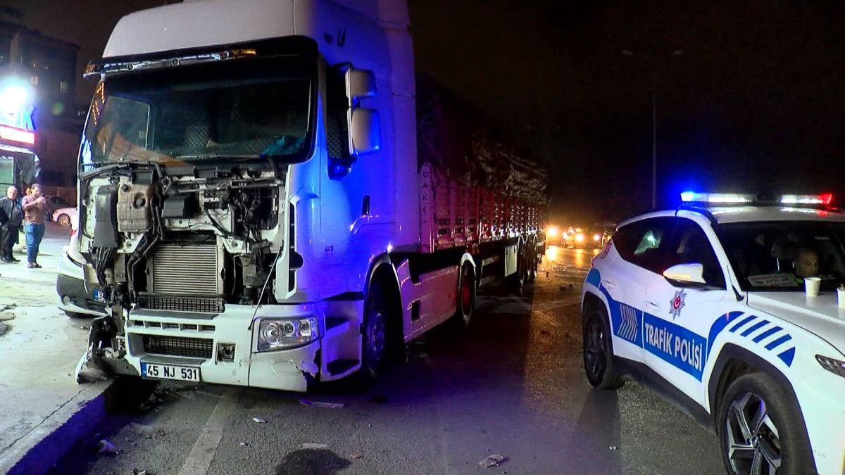 45 NJ 531 plakalı TIR, şoför Ercan C.'nin direksiyon hakimiyetini kaybetmesi sonucu önce park halindeki hafriyat kamyonuna, daha sonra park halindeki 4 araca çarparak durabildi.