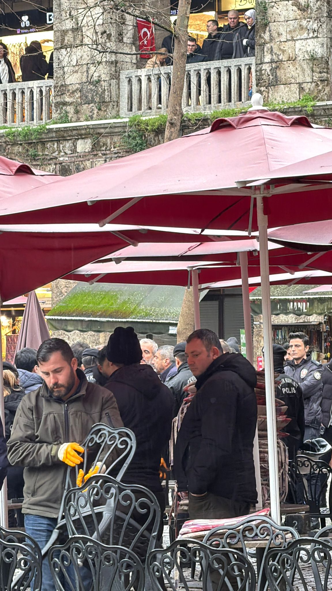 Diğer tüm işletmelerin masa ve şemsiyelerini kaldırmasına rağmen söz konusu esnafın uygulamayı reddetmesi üzerine han içerisine çok sayıda polis ekibi sevk edildi. Polis ekipleri, han avlusunda güvenlik çemberi oluştururken, esnaf ile zabıta arasında tartışmalar yaşandı.