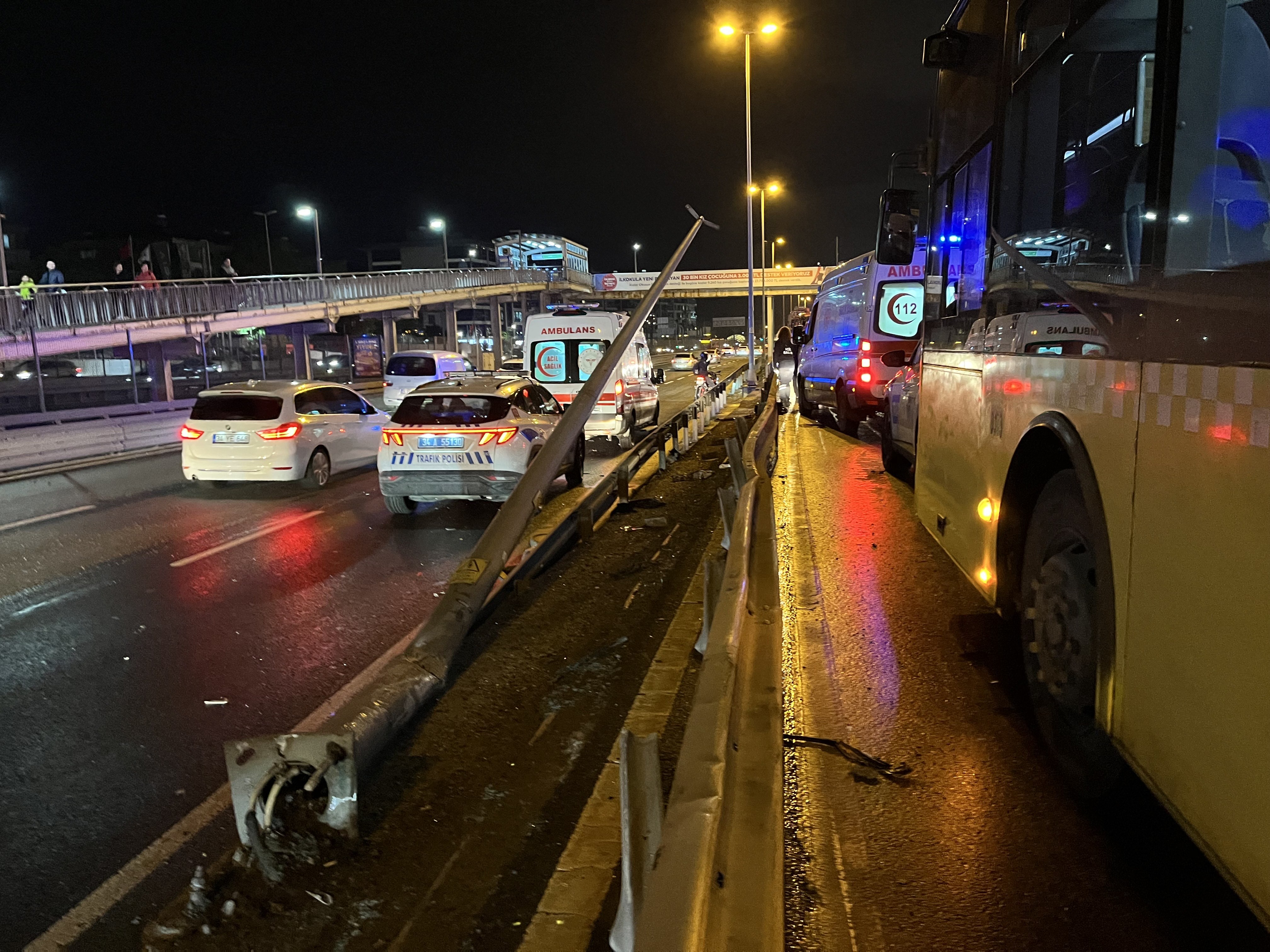 Küçükçekmece’de E5 karayolu yan yolda bariyerlere çarpan otomobil, ardından başka bir araca çarpıp takla attı. Kazaya karışan dört araçta hasar meydana gelirken, 3 kişi yaralandı.