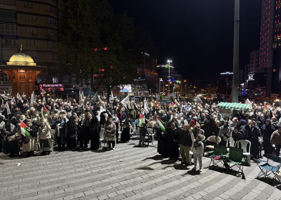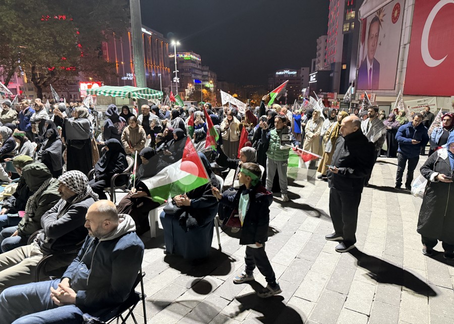 Ellerindeki Türk ve Filistin bayrakları ile çeşitli pankartları taşıyan vatandaşlar, tekbir getirip dua etti.
