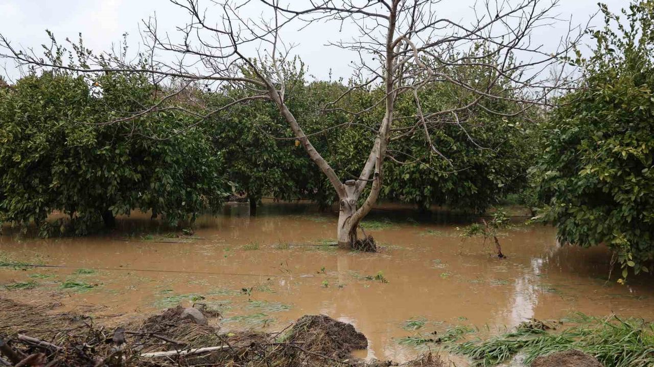 Aydın'ın Kuşadası ilçesinde etkili olan sağanak yağışla beraber yaşanan sel baskını sonrasında Davutlar Mahallesi'nde bulunan bahçeler göle döndü, meyve ağaçları sular altında kaldı.