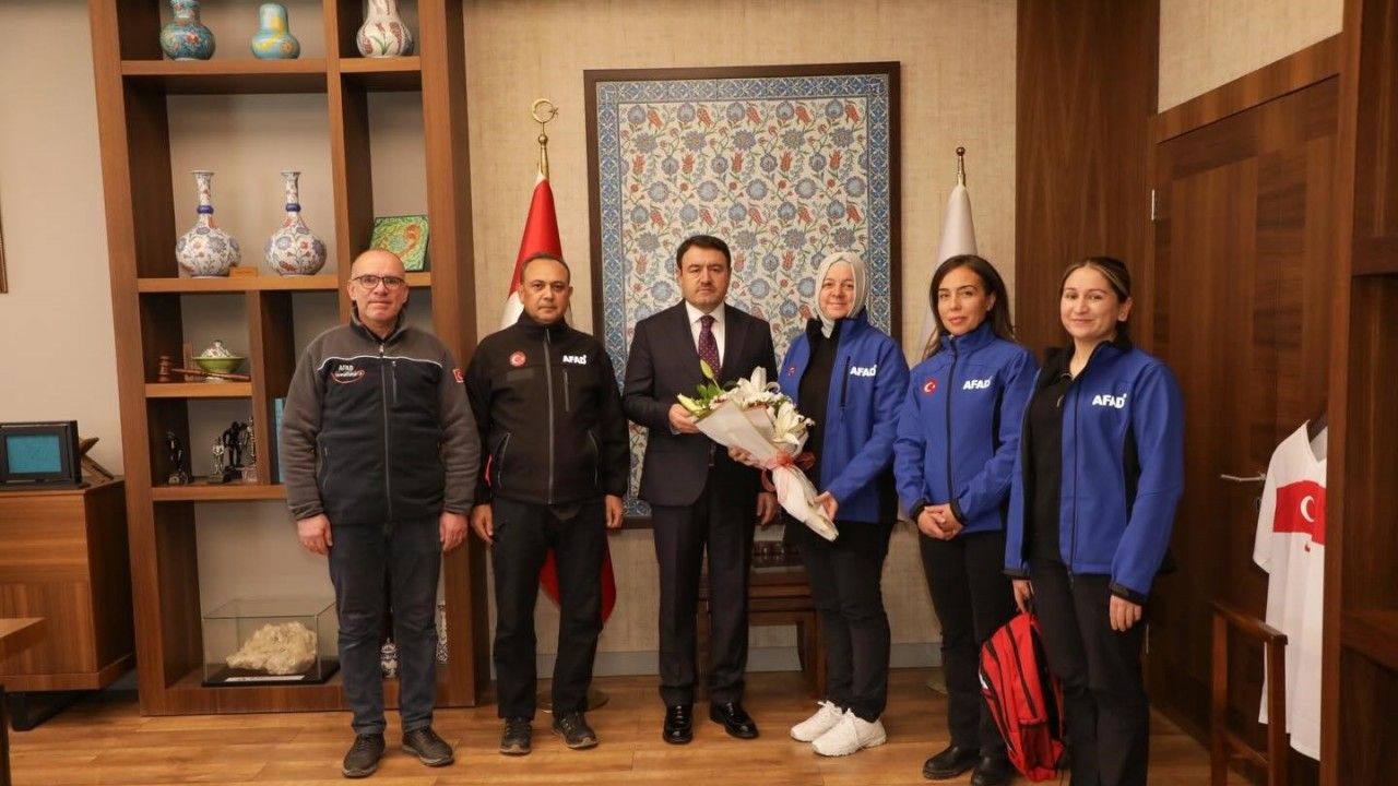 Afet ve Acil Durum Yönetimi Başkanlığı’nın (AFAD) 16’ıncı Kuruluş Yıl Dönümü dolayısıyla Kütahya İl Afet ve Acil Durum Müdürü İsmail Özkan ve beraberindeki heyet, Vali Musa Işın’ı makamında ziyaret etti.