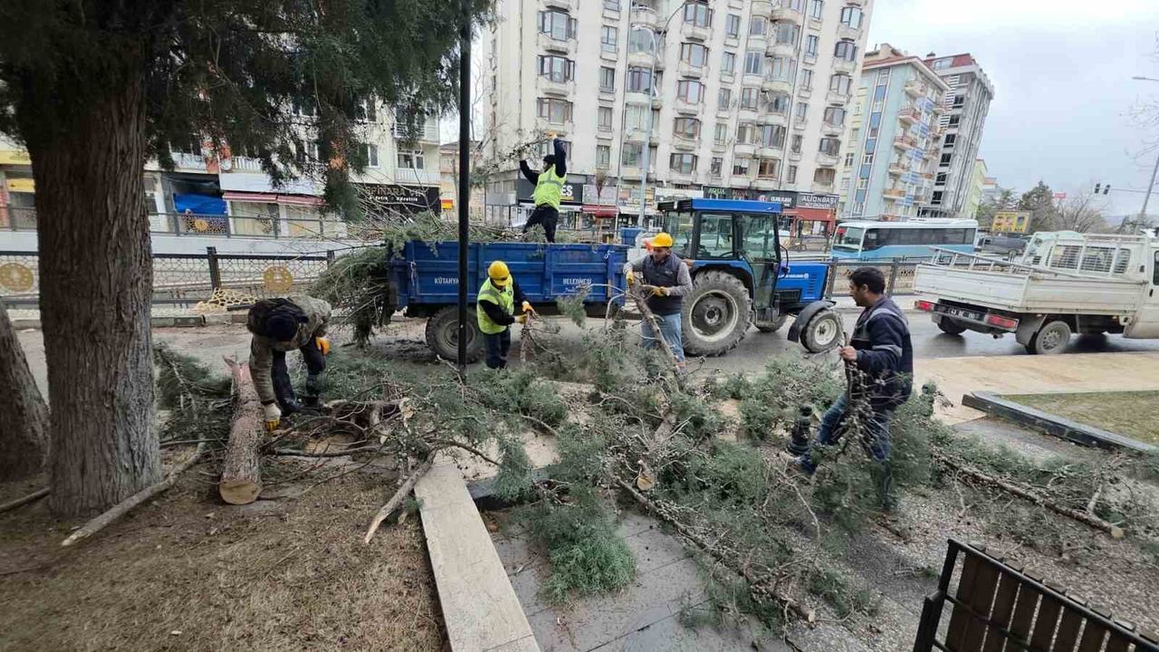 Kütahya'da etkili olan aşırı rüzgâr ve fırtına nedeniyle çok sayıda ağacın dalları gövdelerinden koparak çevreye savruldu.