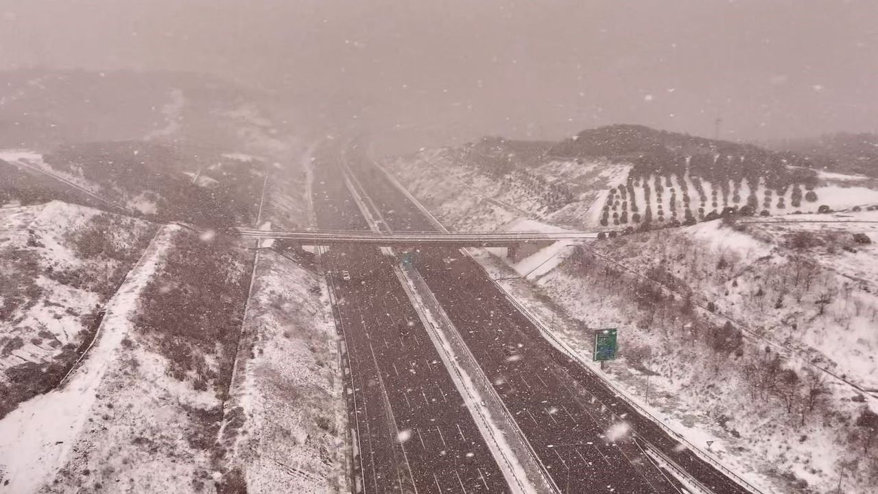 Meteoroloji Genel Müdürlüğü'nün günler öncesinden yaptığı uyarıların ardından dün gece saatlerinde İstanbul'un birçok noktasında aralıklarla etkili olan kar yağışı bugün tekrar başladı. Kar yağışı etkisini artırarak devam ediyor. Kuzey Marmara Otoyolu Fenertepe Mevkii'nde lapa lapa kar yağıyor. Yağış havadan görüntülendi.
