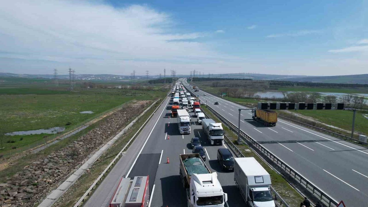 Olay, Kuzey Marmara Otoyolu'nun Çatalca ilçesi Nakkaş mevkiinde, Edirne istikametinde meydana geldi. Edinilen bilgilere göre, Pendik'ten hareket eden 34 HLL 359 plakalı köpük sprey yüklü kamyon, seyir halindeyken bilinmeyen bir nedenle yanmaya başladı. Kısa sürede büyüyen yangın sırasında kamyon kasasında bulunan inşaatlarda kullanılan köpük spreyler art arda patladı. Patlamaların etkisiyle spreyler metrelerce sağa sola savrulurken, o anlar çevredeki vatandaşlar tarafından cep telefonu kamerasıyla kaydedildi. İhbarlar üzerine bölgeye Arnavutköy, Çatalca ve Başakşehir ilçelerinden çok sayıda itfaiye ekibi sevk edildi. Yangın sonrası kamyon tamamen yanarak hurdaya dönerken, Kuzey Marmara Otoyolu'nun dört şeritli yolunun iki şeridi trafiğe kapandı. Kalan iki şeritten kontrollü olarak sağlanan trafik nedeniyle kilometrelerce araç kuyruğu oluştu.