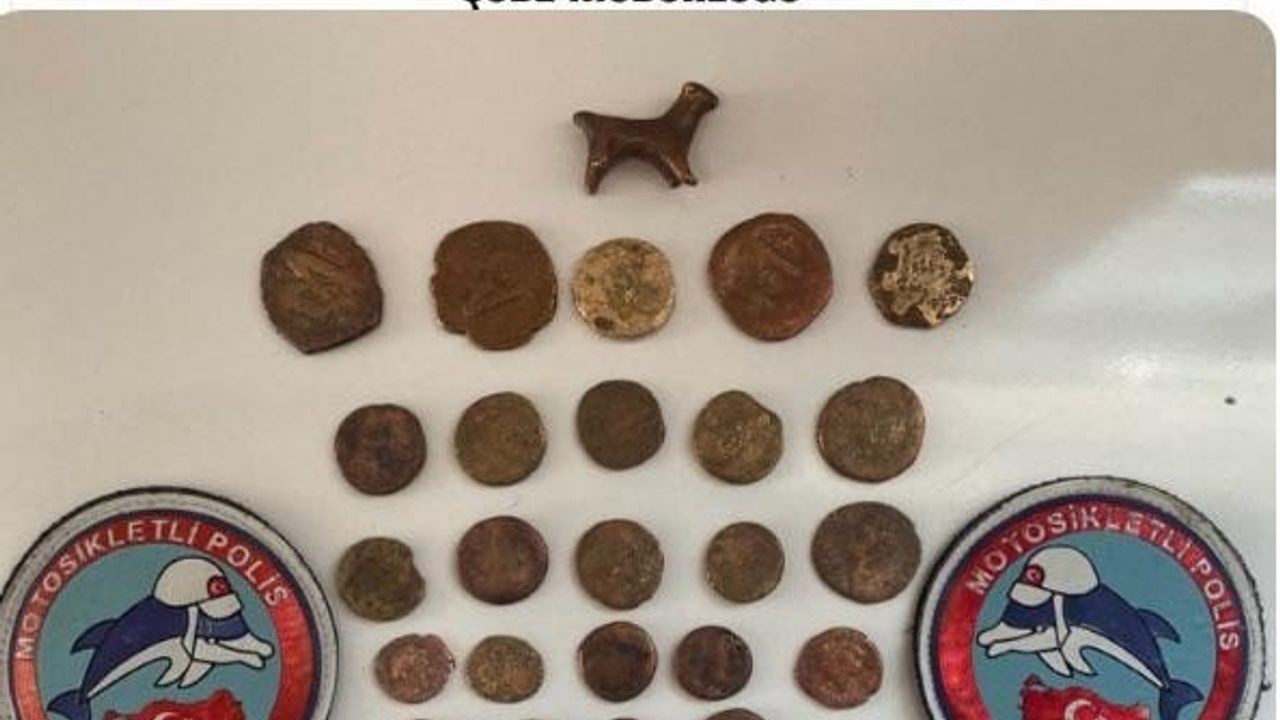 Mardin’de polis ekiplerince düzenlenen operasyonda, tarihi eser niteliğinde olduğu değerlendirilen 45 adet sikke ile hayvan figürlü heykel ele geçirildi. Olayla ilgili 2 şahıs gözaltına alındı.