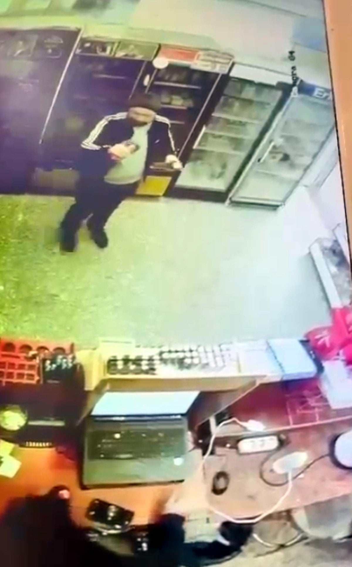 Şüphelinin içkileri alıp, iş yerinden çıktığı anlar güvenlik kamerasına yansıdı.