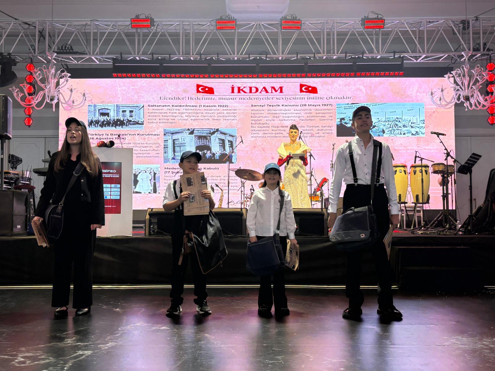 Cumhuriyet döneminde gazetelerde Cumhuriyet’in ilanını halka duyuran eski postacıların sokaklarda bağırarak haber vermesi, galada yeniden canlandırıldı.
