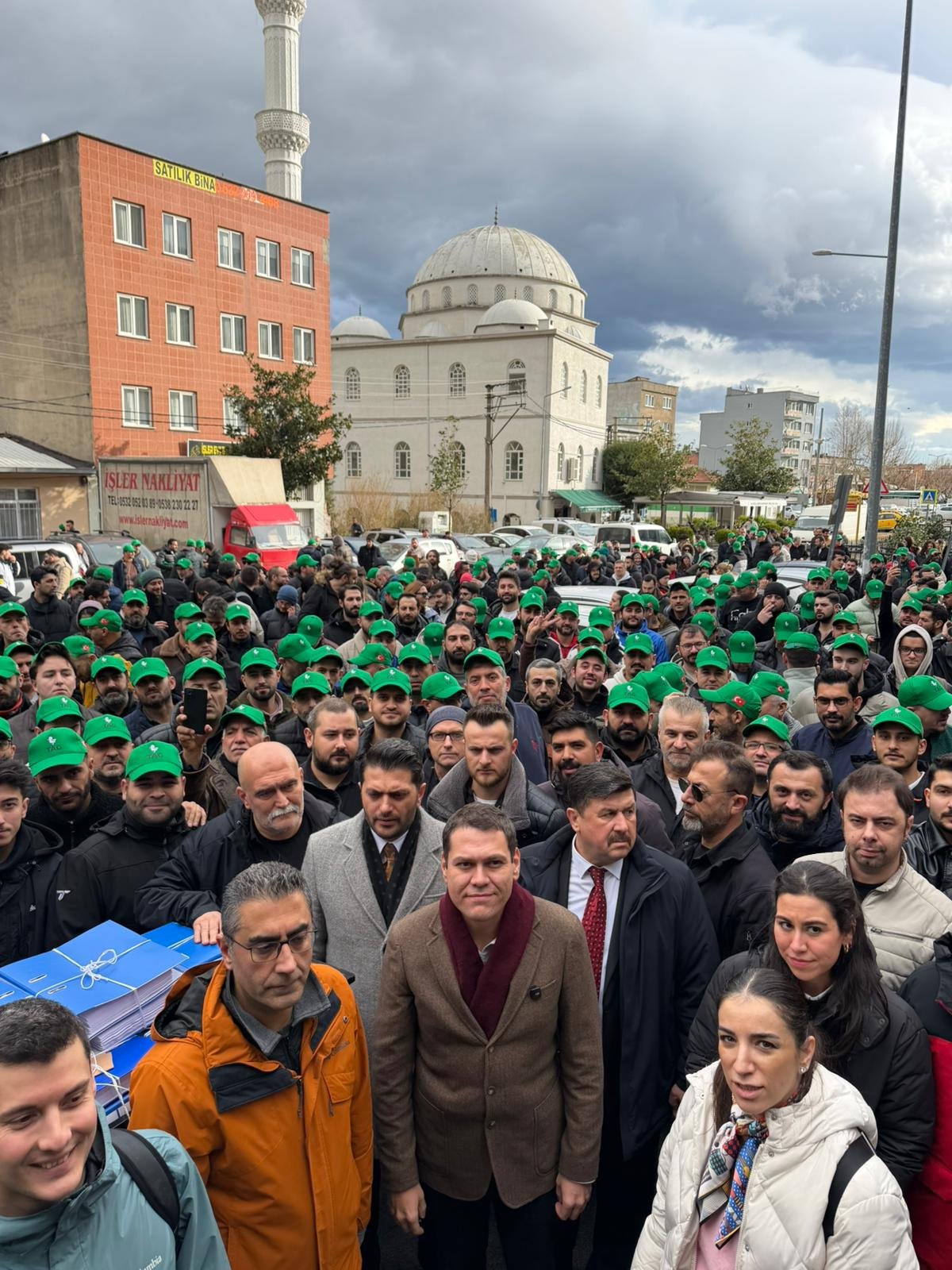 Ellerinde pankartlar ve bayraklarla UKOME binası önünde bekleyen destekçiler, uygulamanın sürücüler ve yolcular için önemli bir ulaşım alternatifi olduğunu savundu.