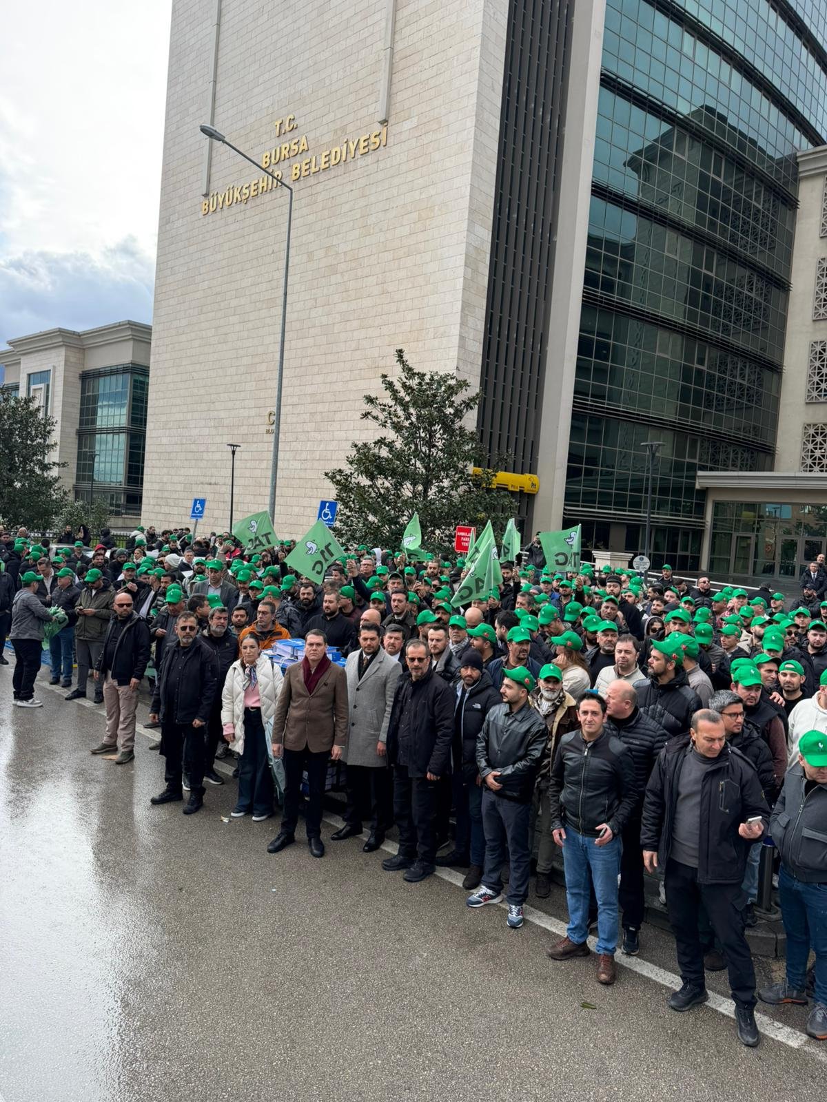 Bursa Büyükşehir Belediyesi önünde toplanan Martı TAG sürücüleri ile taksi sürücüleri arasında gerginlik yaşandı.