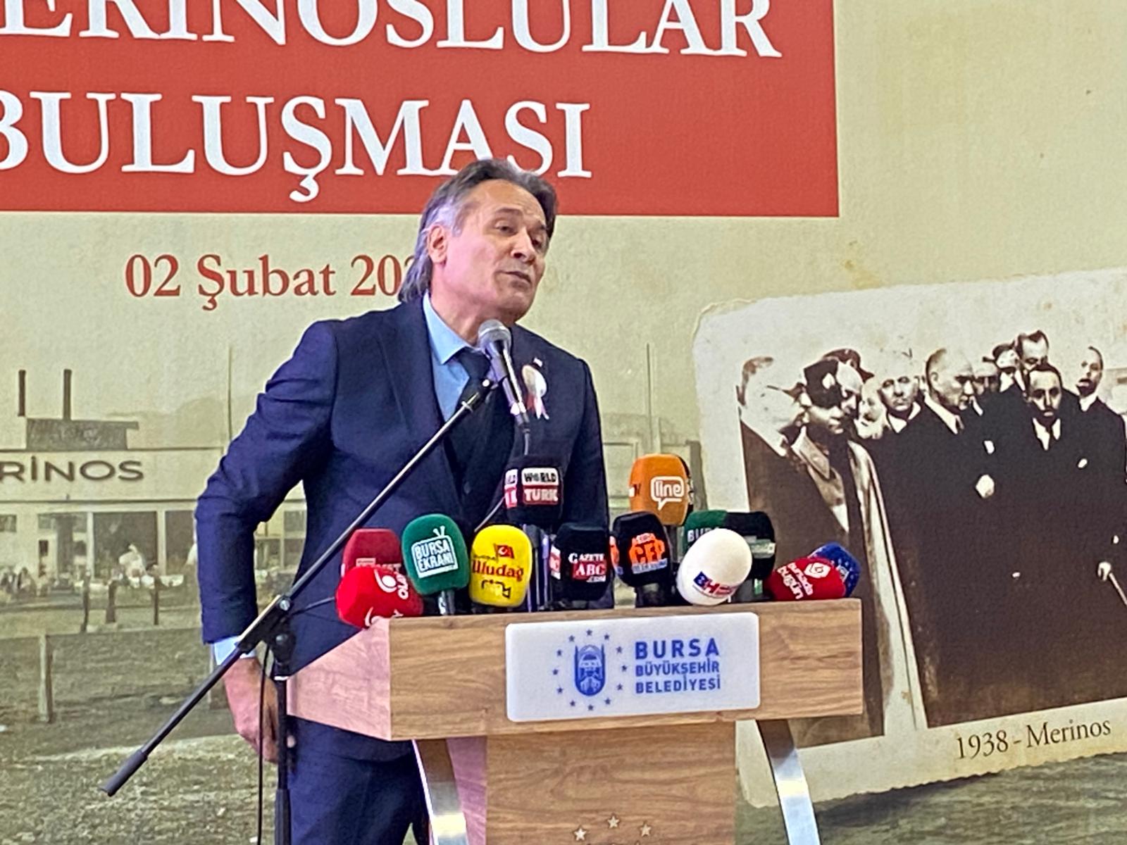 Etkinlikte söz alan Bursa Kent Konseyi Başkanı Prof. Dr. Ertuğrul Aksoy ise konuşmasına, buluşmaya katkı sunan Bursa Büyükşehir Belediyesi’ne teşekkür ederek başladı. Merinoslular Buluşması’nın heyecanını ve birlikteliğini paylaşmanın önemine değinen Aksoy, organizasyonda emeği geçen Merinos Çalışma Grubu ve Merinos Emekliler Derneği’ne teşekkür etti.
