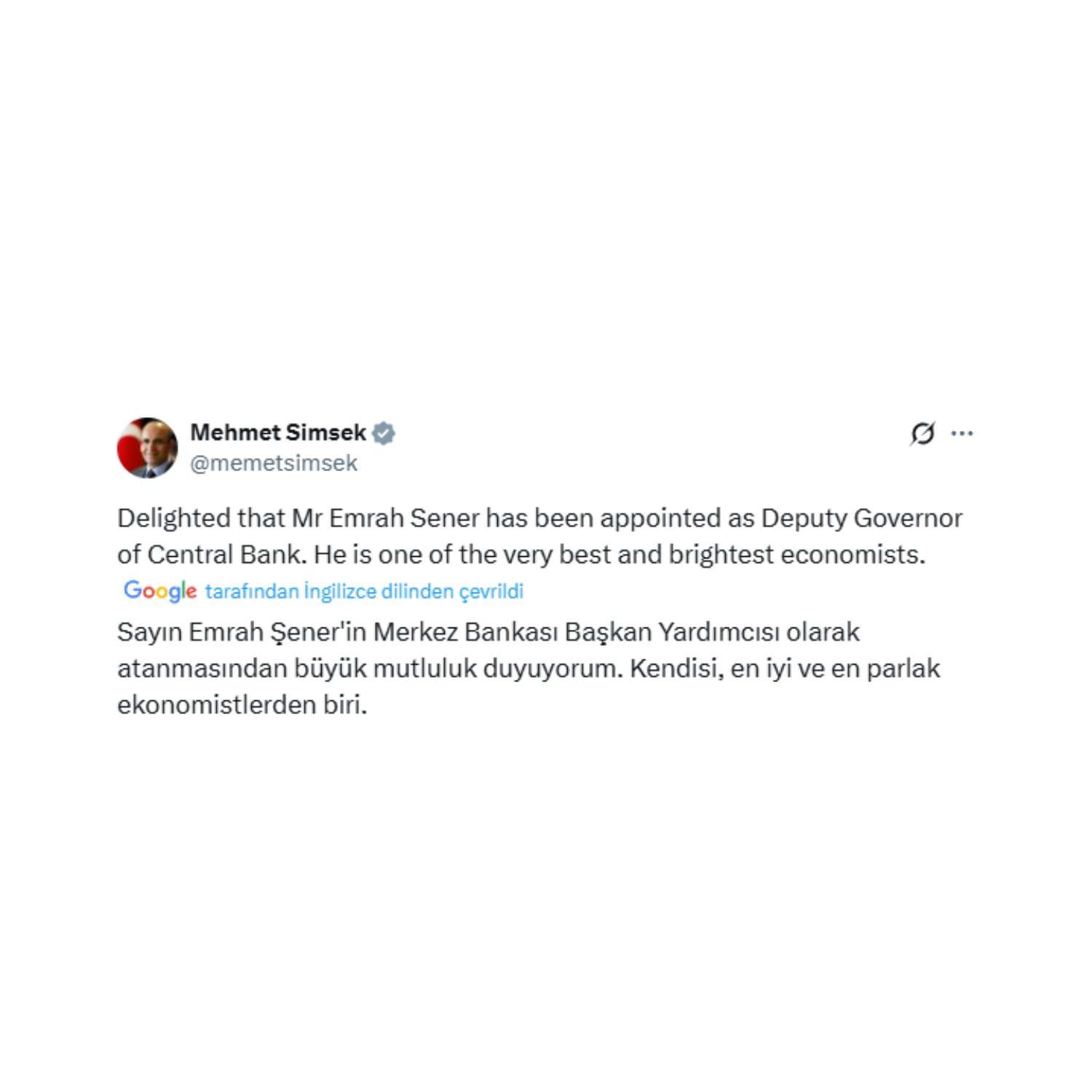 Mehmet Şimşek'in, göreve atandığında "Kendisi, en iyi ve en parlak ekonomistlerden biri" paylaşımını yaptığı TCMB Eski Başkan Yardımcısı Emrah Şener, kamuyu 100 milyon TL dolandırdığı iddiasıyla tutuklandı.