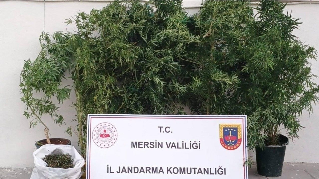Mersin Erdemli ilçesinde jandarma ekipleri 1 kilo 250 gram esrar ile 25 kök kenevir ele geçirdi,1 şüpheli yakalandı.