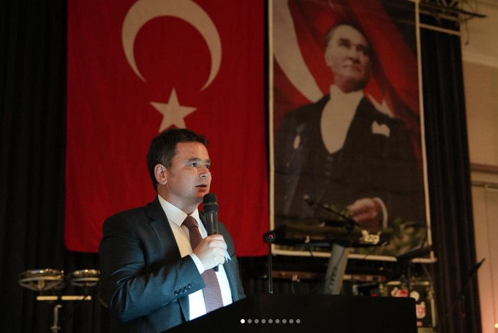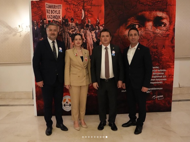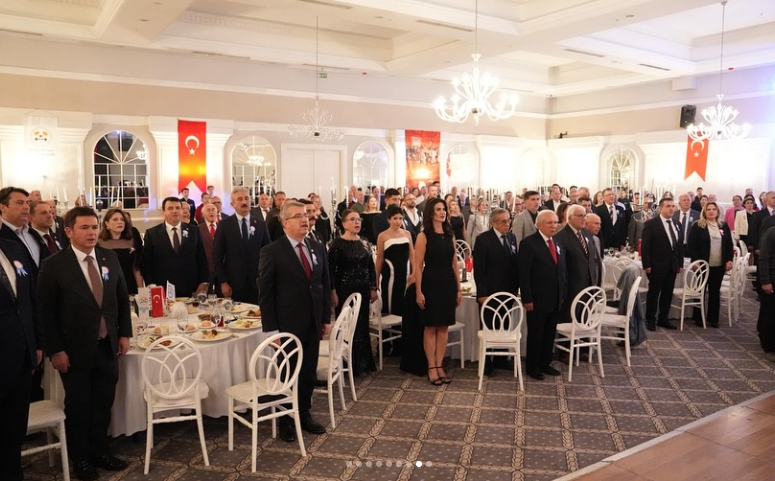 Cumhuriyet’in kuruluşuna ve kazanımlarına vurgu yapılan gecede, salondaki kırmızı-beyaz süslemeler ve marşlar eşliğinde anlamlı bir atmosfer oluşturuldu. Konuklar, dostluk yemeğinin ardından müzik eşliğinde dans ederek Cumhuriyet coşkusunu doyasıya yaşadı.