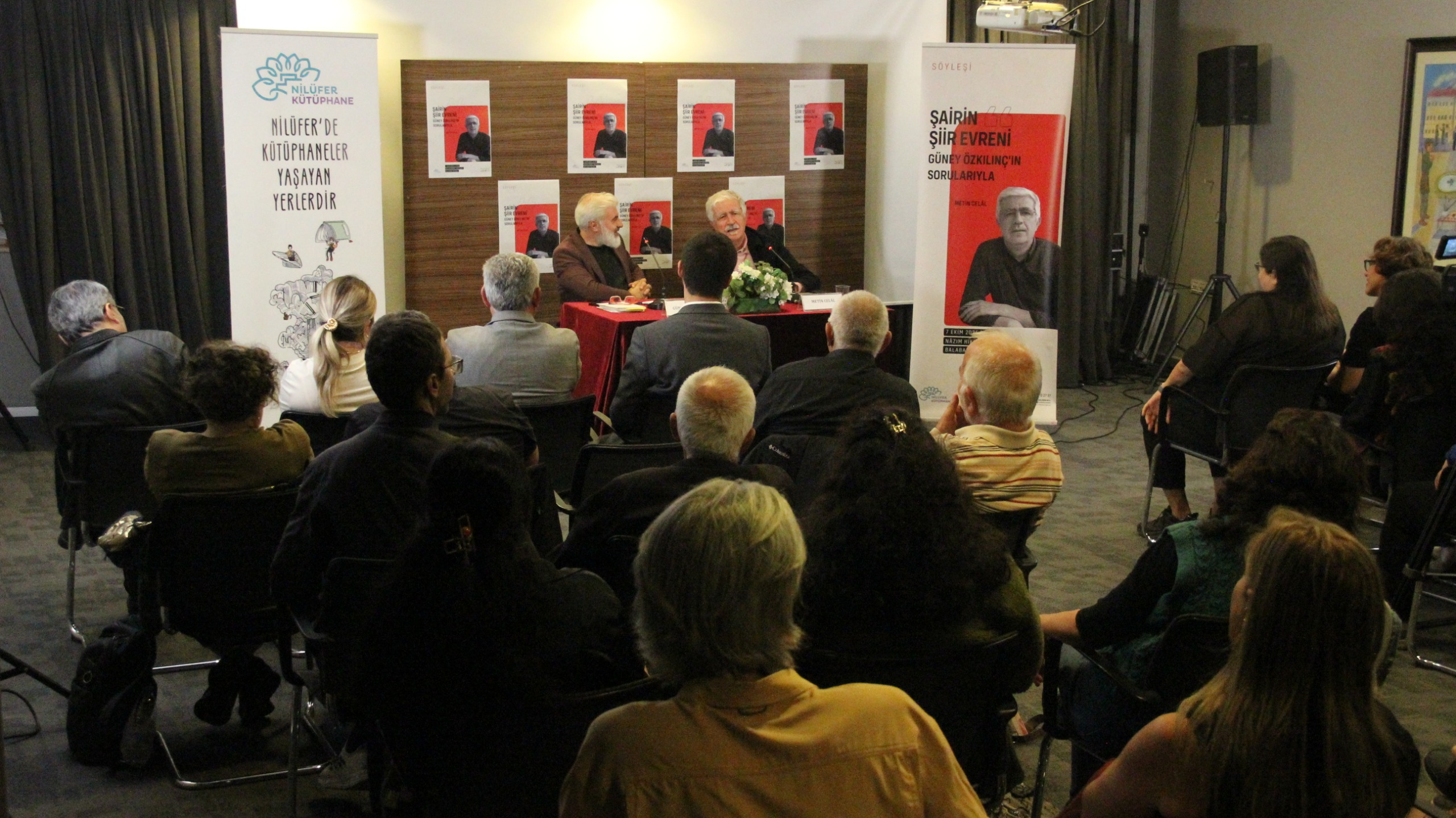 Nilüfer Belediyesi’nin Nazım Hikmet Kültürevi’nde düzenlediği “Şairin Şiir Evreni” başlıklı söyleşi, usta yazar Metin Celâl’in katılımıyla gerçekleşti. Sanatseverlerin yoğun ilgi gösterdiği etkinliği, Nilüfer Belediye Meclis Üyesi Furkan Yavuz da takip etti. Bursa Büyükşehir Belediyesi Kent Tarihi ve Tanıtımı Daire Başkanı Güney Özkılınç’ın moderatörlüğünde gerçekleşen söyleşide Celâl, şiir sanatının inceliklerini ve kendi edebi yolculuğunu dinleyicilerle paylaştı.