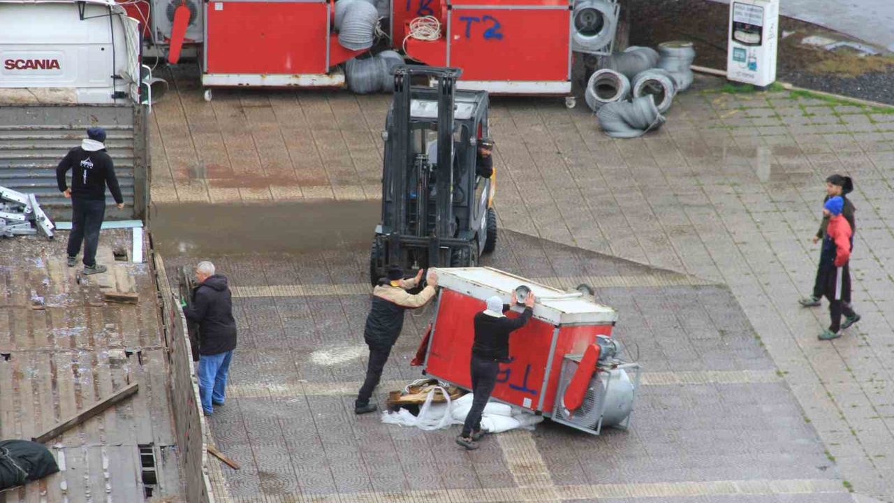 Olay, Cumhuriyet Meydanı'nda gerçekleştirilen yük indirme çalışmaları sırasında meydana geldi. Meydanda kurulması planlanan Ramazan çadırında kullanılmak üzere tırla alana getirilen havalandırma üniteleri için zabıta ekipleri tarafından güvenlik önlemleri alınarak alan bariyerlerle çevrildi. Tırla alana getirilen havalandırma üniteleri forklift yardımıyla indirilmeye başlandı. Tırda bulunan toplam 5 üniteden 4'ü sorunsuz şekilde indirilerek belirlenen noktaya yerleştirildi.