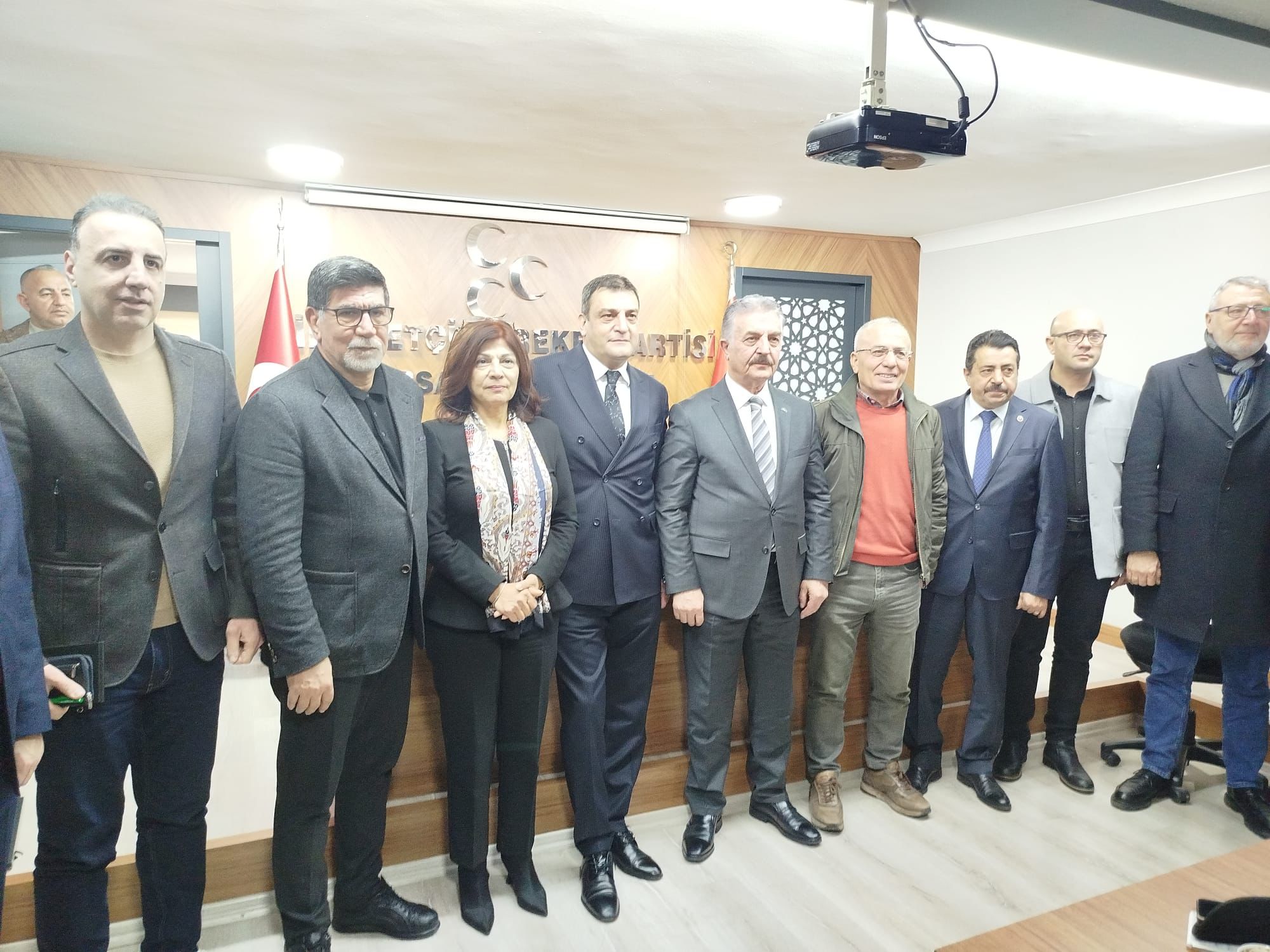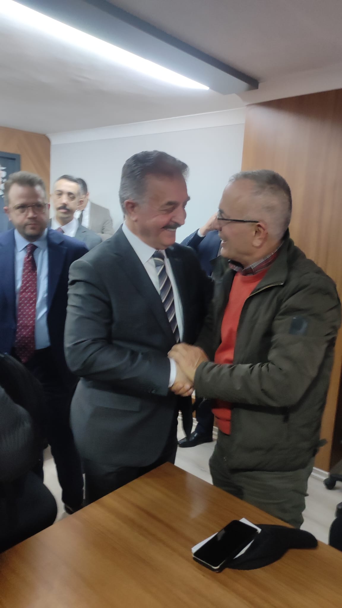 İl başkanlığı tıklım tıklımdı, İsmet Büyükataman’ın bir yanında İl Başkanı Muhammet Tekin, öteki yanında İkinci Bölge Milletvekili Fevzi Zırhlıoğluvardı.