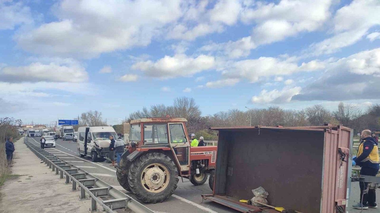 Alınan bilgiye göre, Tekirdağ’dan Gelibolu yönüne giden M.Ç. yönetimindeki yolcu midibüsü, S.Ü. yönetimindeki 22 FP 243 plakalı traktöre bağlı römorka arkadan çarptı. Çarpmanın etkisiyle römork yan yatarken, midibüsteki 1 yolcu yaralandı. İhbar üzerine kaza yerine sağlık ve polis ekipleri sevk edildi. Yaralı, ambulansla kaldırıldığı Keşan Devlet Hastanesi’nde tedavi altına alındı.