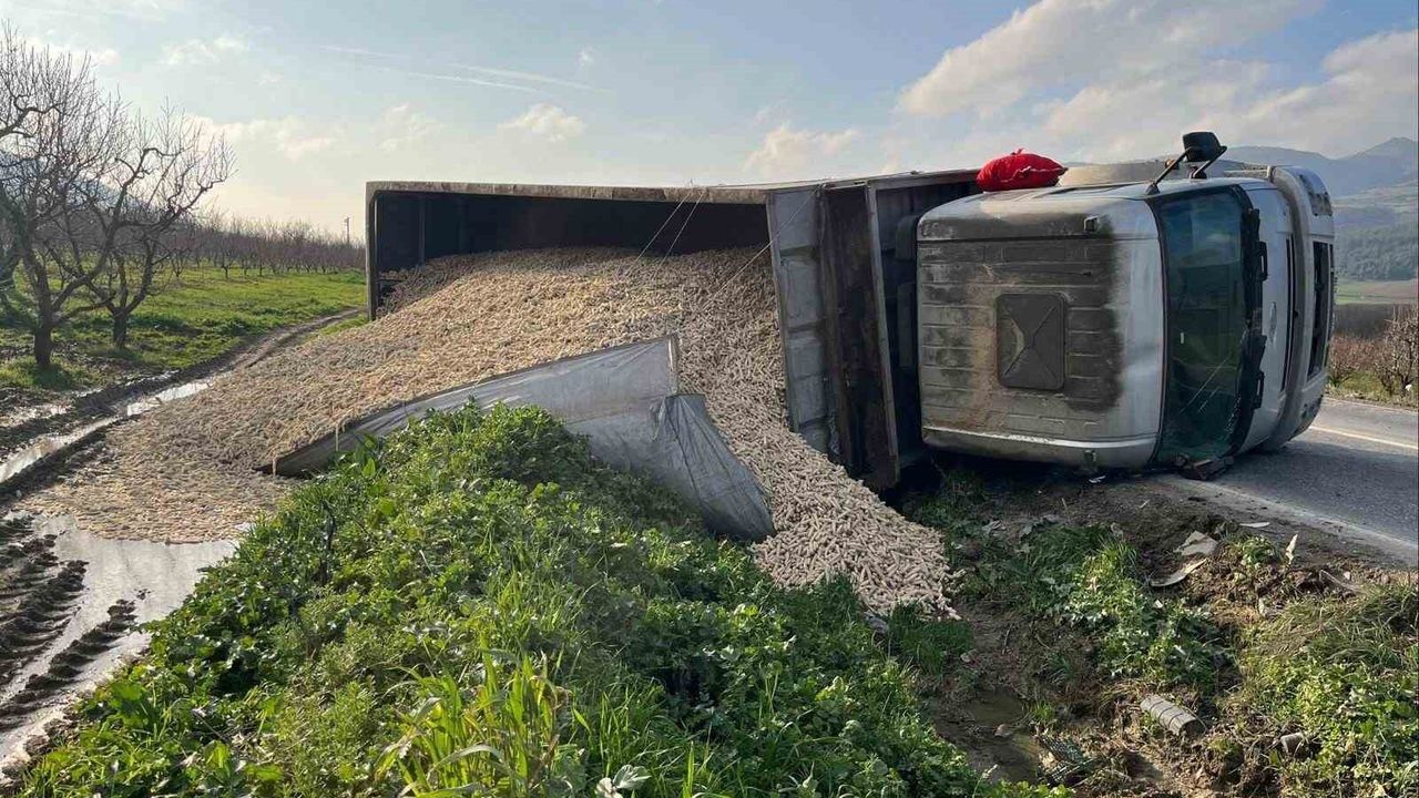 Bilecik'te mısır koçanı yüklü çekicinin devrilmesi sonucu meydana gelen trafik kazasında 1 kişi yaralandı.