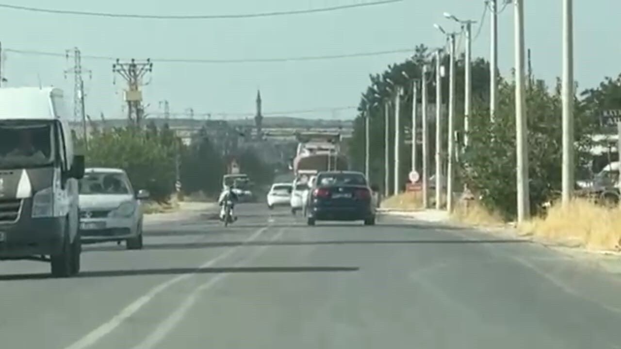 Edinilen bilgiye göre olay, Şanlıurfa’nın Suruç ilçesine bağlı Aligör Mahallesi’nde yaşandı. Trafikte seyreden sürücüler, motosikletin üzerine uzanarak süren bir sürücü fark etti. Tehlikeli bir şekilde trafikteki araçları sollayan sürücü adeta ölüme davetiye çıkarttı. Tehlikeye aldırış etmeden ilerleyen motosikletli, Suruç ilçe girişinde bulunan Kent Güvenlik Yönetim Sistemleri (KGYS) kameralarına yaklaşınca motosikletin üzerinden doğrularak yoluna devam etti. O anlar ise başka bir sürücünün kamerasına yansıdı.